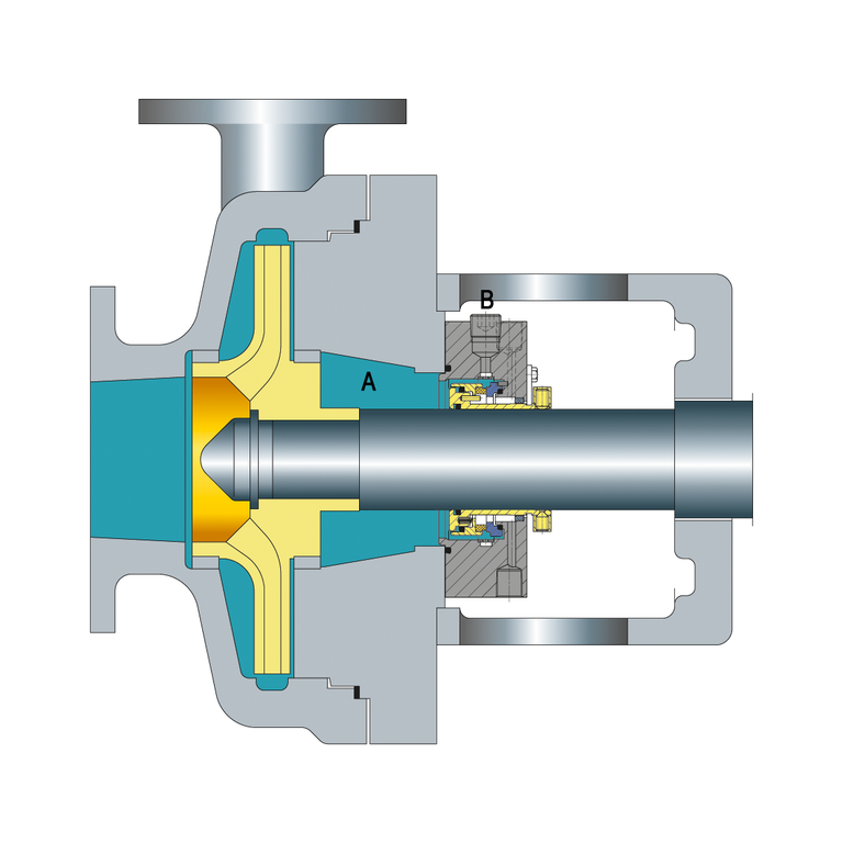 A Taper bore design of seal chamber B Flush connection plugged
